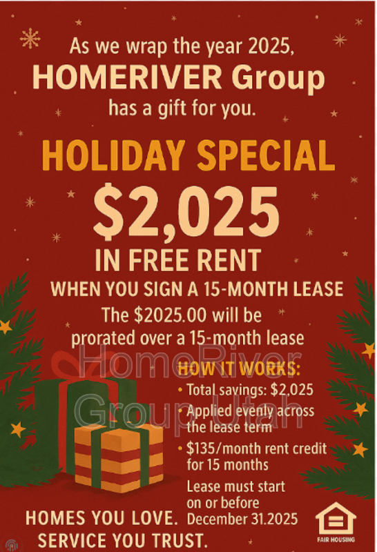 $2,025.00 in Free Rent prorated over a 15-month lease term with a move-in on or before December 31.